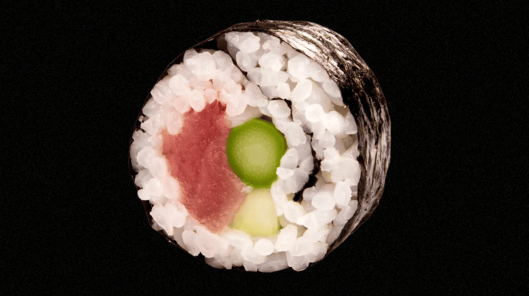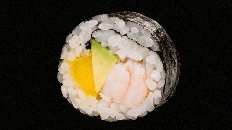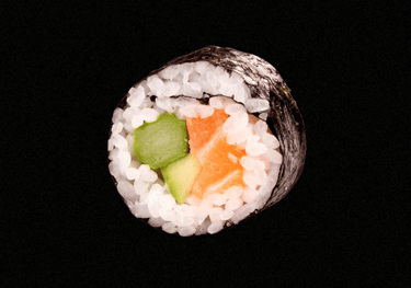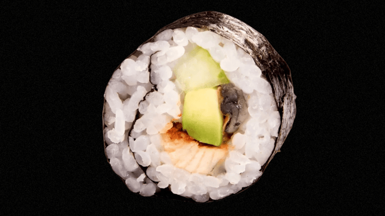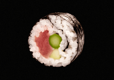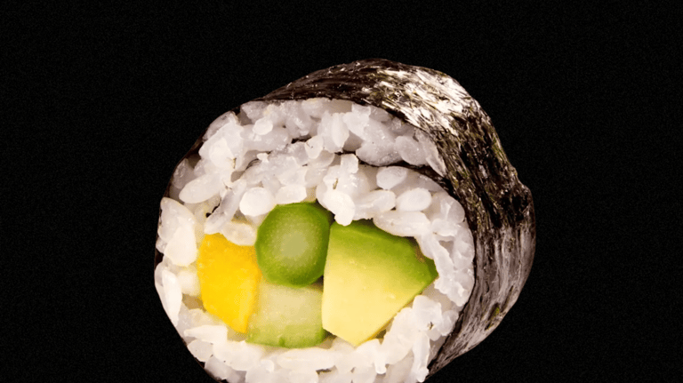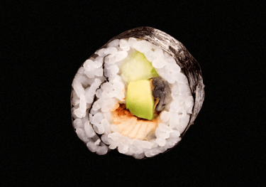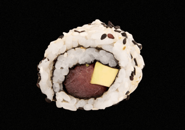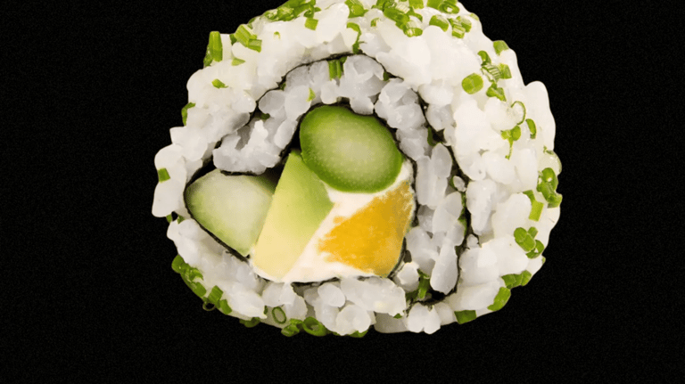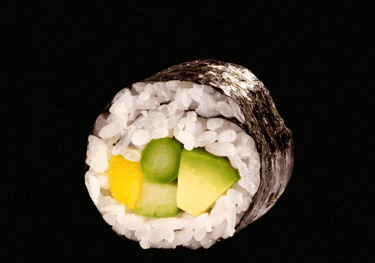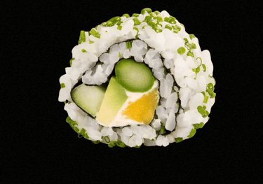 Mango, pepino, espárragos, queso crema, aguacate y cebollino
