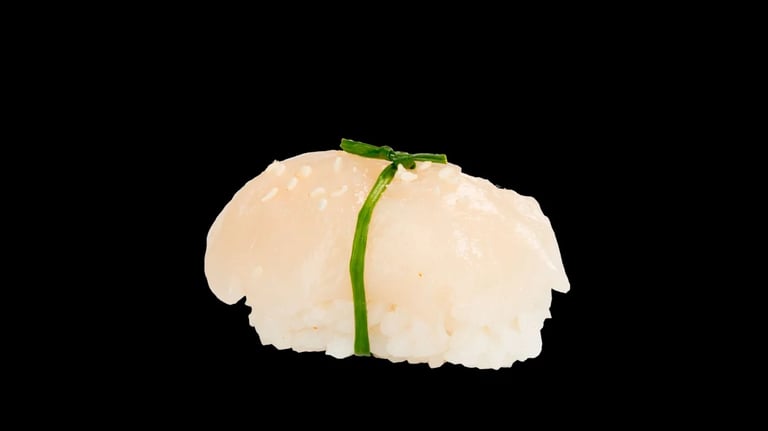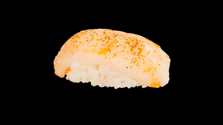 Nigiri Flambeado Vieira y Yuzu