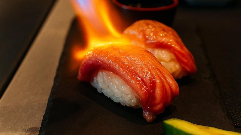 Nigiris Flambeados de Solomillo de ternera